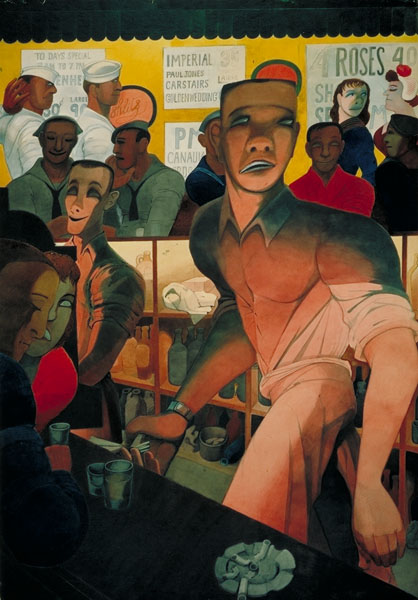 White folks’ tendency to see black people as epitomising cool, that’s admittedly a little more complex. After all black people of the time were often keen to exhibit this, to the point of inventing the term! Nevertheless, there is an element of reducing black people to an image. Which seems rather different to reducing sailors to an image. Ironically the ‘Harlem Renaissance’, which doubtless brought Burra to the area, was often concerned with black artists presenting a more nuanced and sophisticated view of themselves.